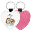 I'm just here to get Belayed, Μπρελόκ PU δερμάτινο glitter καρδιά ΡΟΖ