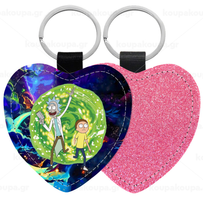 Rick and Morty, Μπρελόκ PU δερμάτινο glitter καρδιά ΡΟΖ