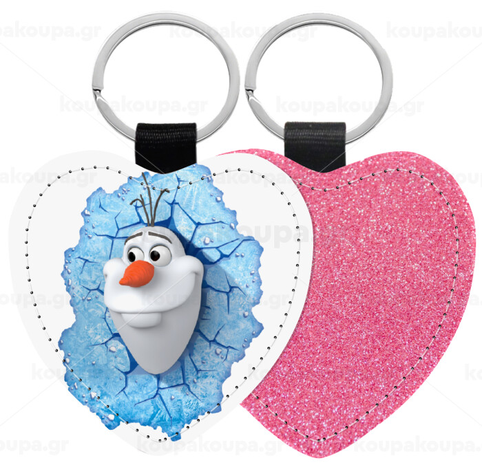 Frozen Olaf, Μπρελόκ PU δερμάτινο glitter καρδιά ΡΟΖ