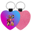 Huntrix Kpop Girls, Μπρελόκ PU δερμάτινο glitter καρδιά ΡΟΖ