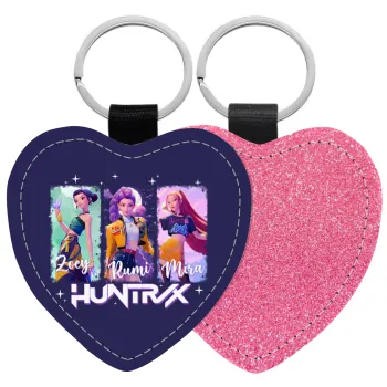 HUNTR/X K-pop girl group, Μπρελόκ PU δερμάτινο glitter καρδιά ΡΟΖ