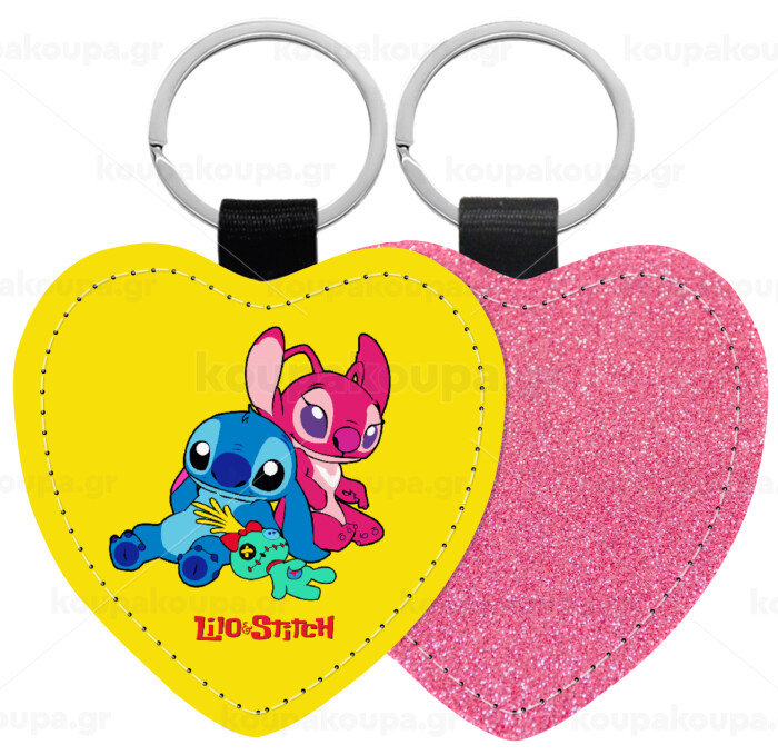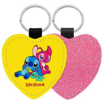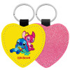 Lilo & Stitch, Μπρελόκ PU δερμάτινο glitter καρδιά ΡΟΖ