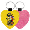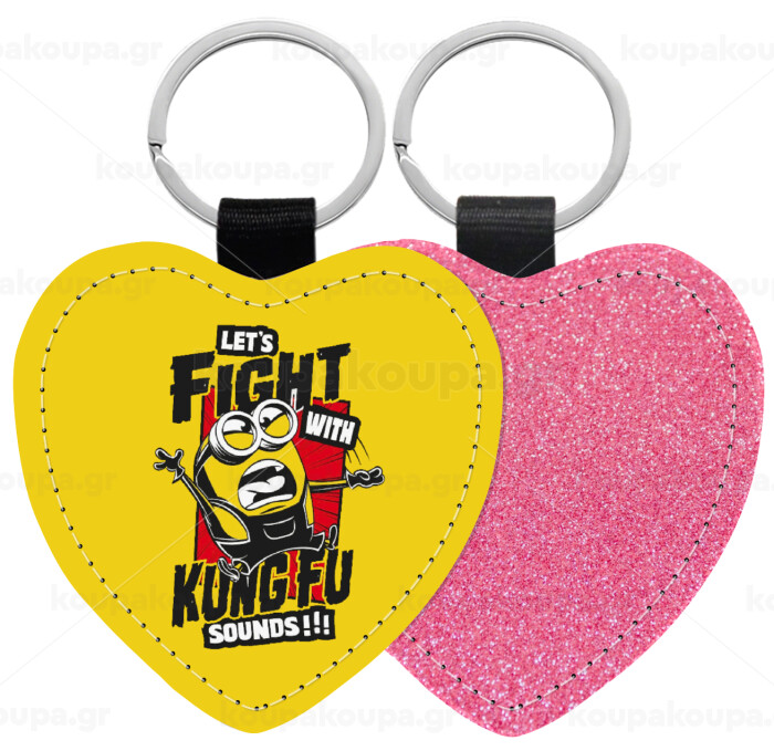 Minions Let's fight with kung fu sounds, Μπρελόκ PU δερμάτινο glitter καρδιά ΡΟΖ