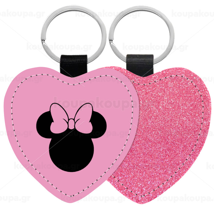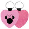 mouse girl, Μπρελόκ PU δερμάτινο glitter καρδιά ΡΟΖ