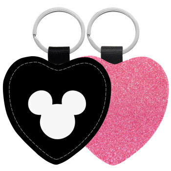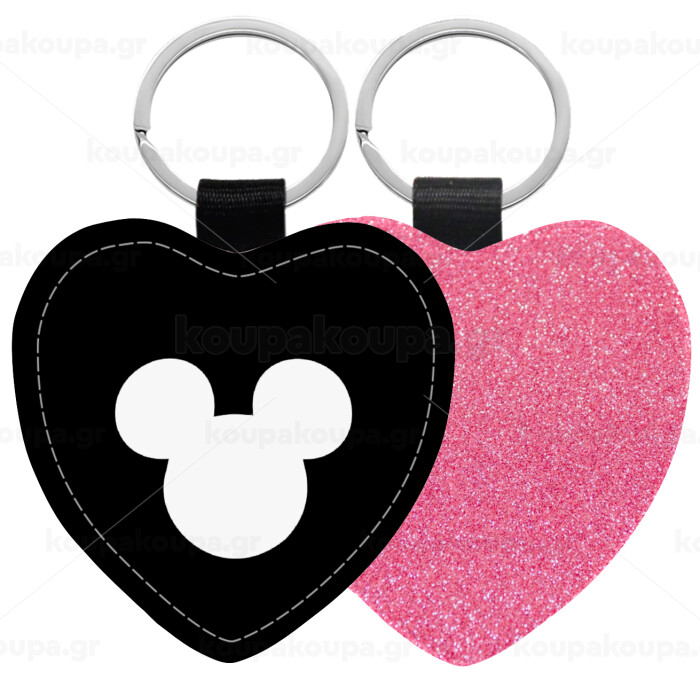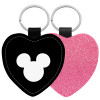 mouse man, Μπρελόκ PU δερμάτινο glitter καρδιά ΡΟΖ