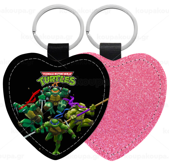 Ninja turtles, Μπρελόκ PU δερμάτινο glitter καρδιά ΡΟΖ