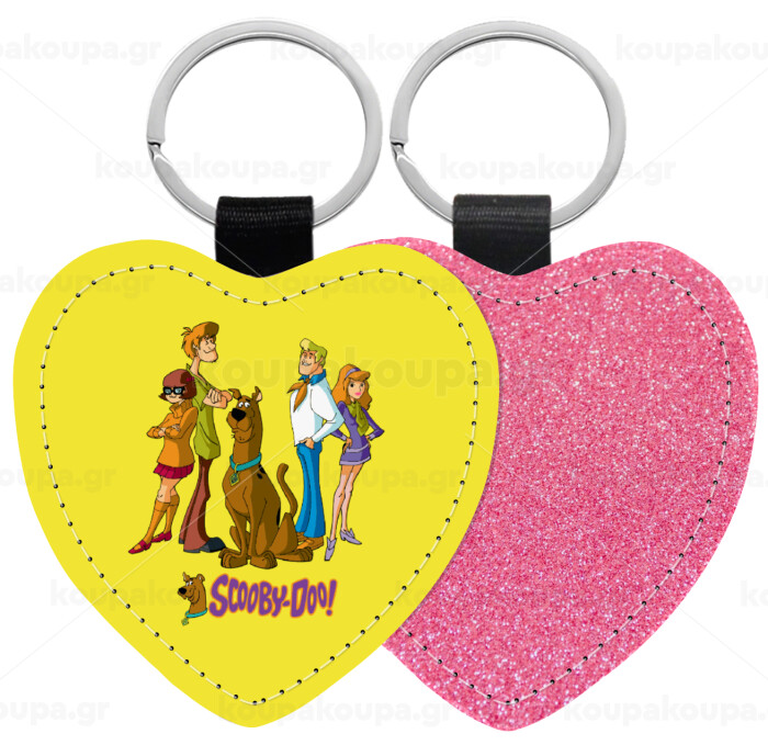 Scooby Doo Characters, Μπρελόκ PU δερμάτινο glitter καρδιά ΡΟΖ