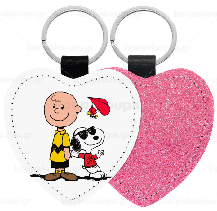 Snoopy & Joe, Μπρελόκ PU δερμάτινο glitter καρδιά ΡΟΖ