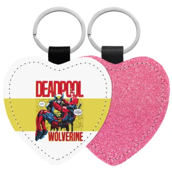 Superhero Deadpool Wolverine, Μπρελόκ PU δερμάτινο glitter καρδιά ΡΟΖ