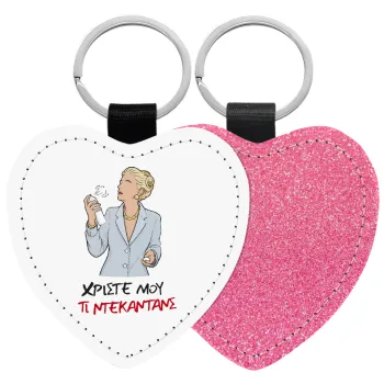 Tι ντεκαντάνς!, Μπρελόκ PU δερμάτινο glitter καρδιά ΡΟΖ