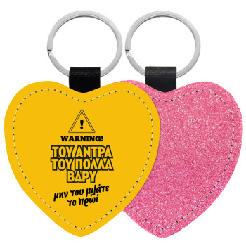Του άντρα του πολλά βαρύ, Μπρελόκ PU δερμάτινο glitter καρδιά ΡΟΖ