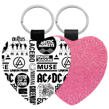Best Rock Bands Collection, Μπρελόκ PU δερμάτινο glitter καρδιά ΡΟΖ