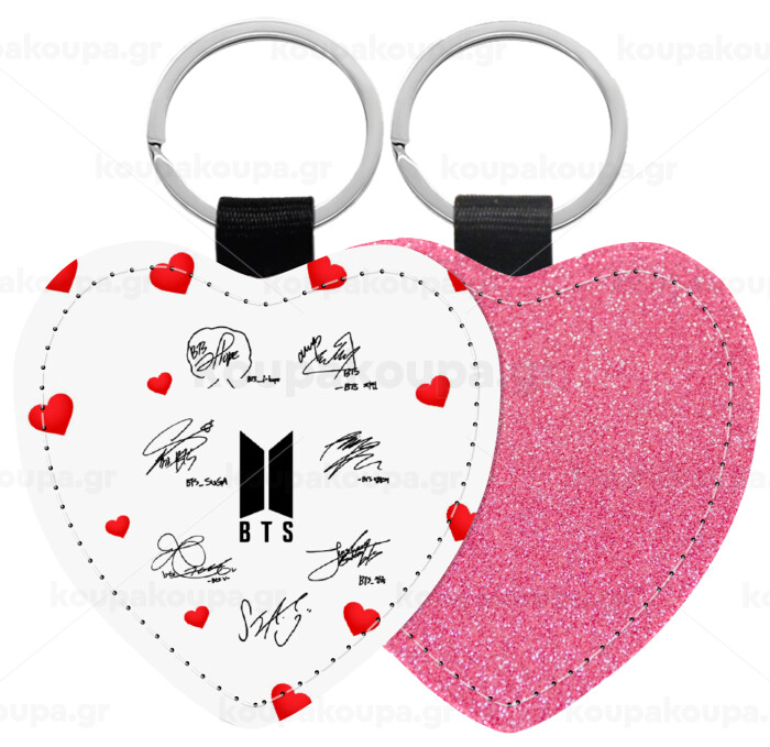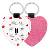 BTS signatures, Μπρελόκ PU δερμάτινο glitter καρδιά ΡΟΖ