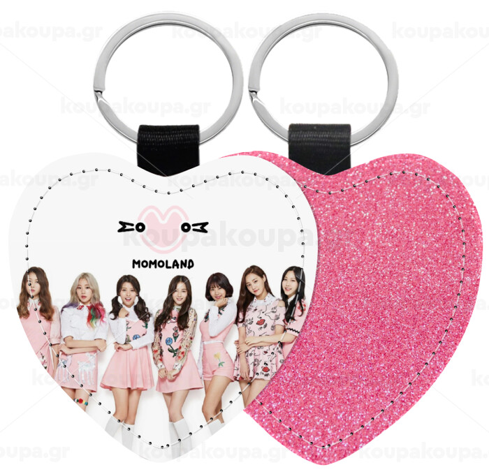 Momoland pink, Μπρελόκ PU δερμάτινο glitter καρδιά ΡΟΖ