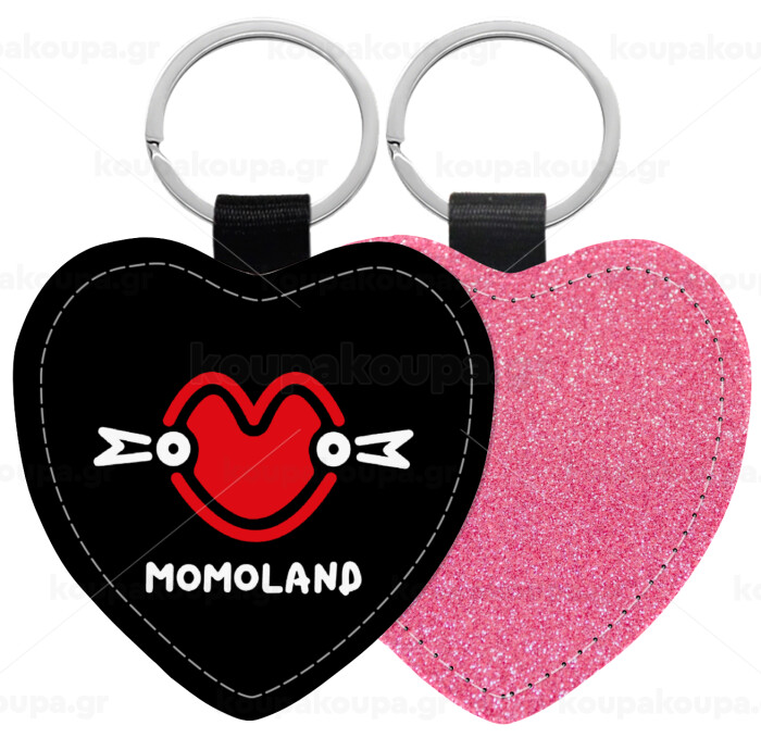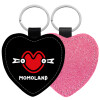 Momoland, Μπρελόκ PU δερμάτινο glitter καρδιά ΡΟΖ