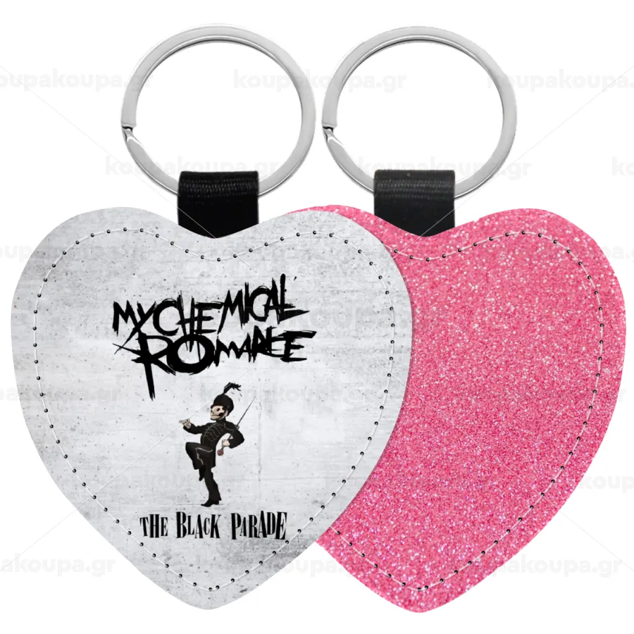My Chemical Romance Black Parade, Μπρελόκ PU δερμάτινο glitter καρδιά ΡΟΖ