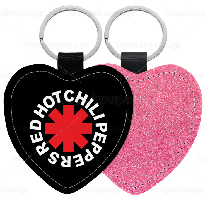 Red Hot Chili Peppers, Μπρελόκ PU δερμάτινο glitter καρδιά ΡΟΖ