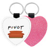 Friends Pivot, Μπρελόκ PU δερμάτινο glitter καρδιά ΡΟΖ