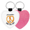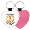 The office, Live every day like pretzel day, Μπρελόκ PU δερμάτινο glitter καρδιά ΡΟΖ