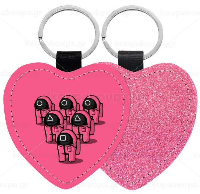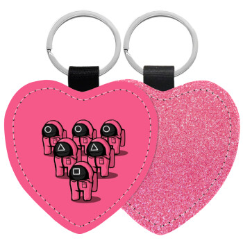 The squid game among us, Μπρελόκ PU δερμάτινο glitter καρδιά ΡΟΖ