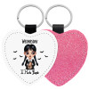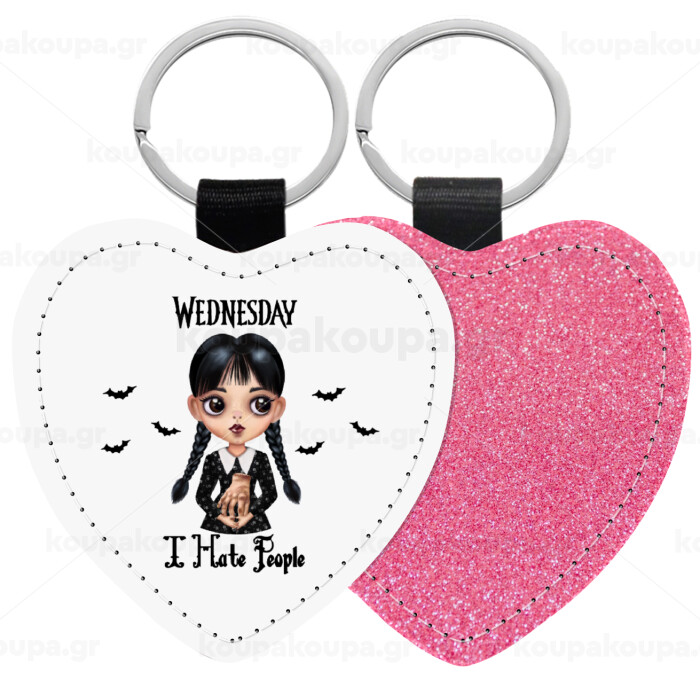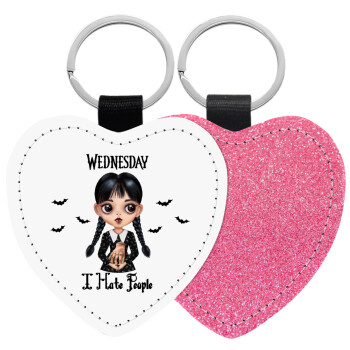 Wednesday Adams, i hate people, Μπρελόκ PU δερμάτινο glitter καρδιά ΡΟΖ