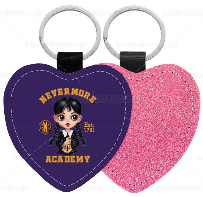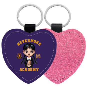 Wednesday Adams, nevermore, Μπρελόκ PU δερμάτινο glitter καρδιά ΡΟΖ