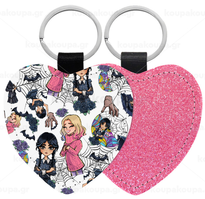 Wednesday and Enid Sinclair, Μπρελόκ PU δερμάτινο glitter καρδιά ΡΟΖ