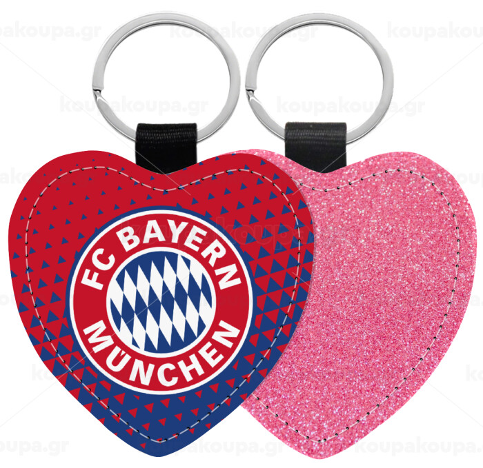 FC Bayern Munich, Μπρελόκ PU δερμάτινο glitter καρδιά ΡΟΖ