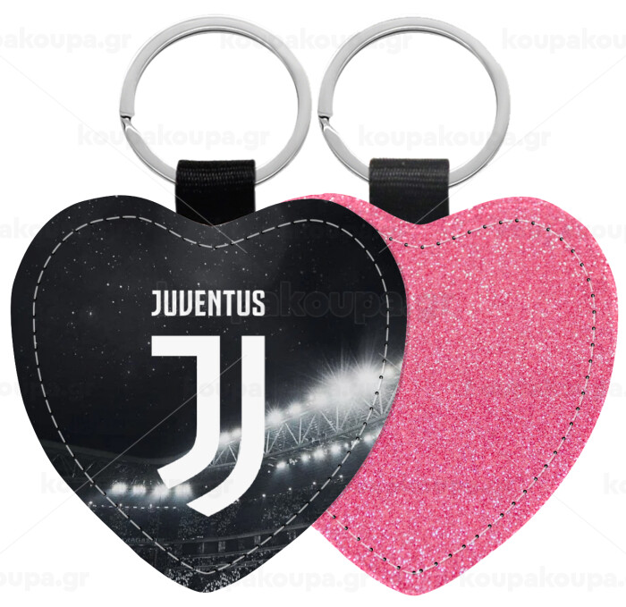 FC Juventus, Μπρελόκ PU δερμάτινο glitter καρδιά ΡΟΖ