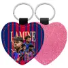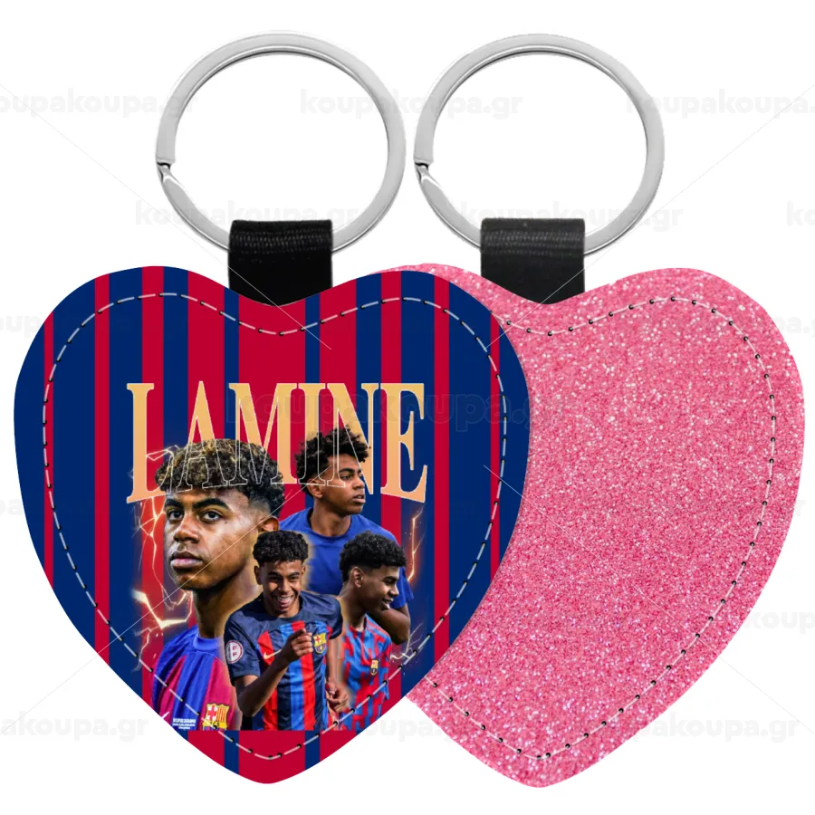 lamine yamal FCB, Μπρελόκ PU δερμάτινο glitter καρδιά ΡΟΖ