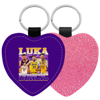 Luka Doncic Basketball , Μπρελόκ PU δερμάτινο glitter καρδιά ΡΟΖ