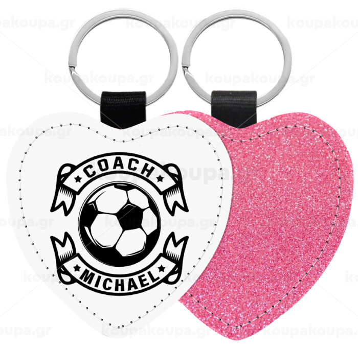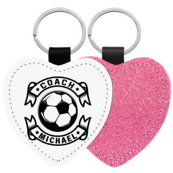 Soccer coach, Μπρελόκ PU δερμάτινο glitter καρδιά ΡΟΖ