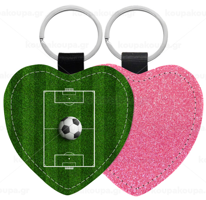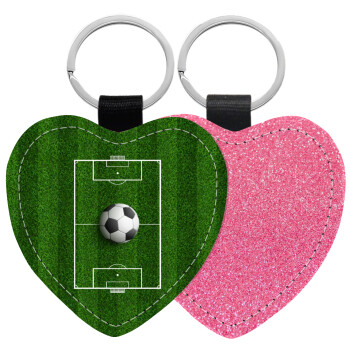 Soccer field, Γήπεδο ποδοσφαίρου, Μπρελόκ PU δερμάτινο glitter καρδιά ΡΟΖ