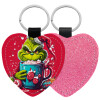 Giggling Grinchy Galore, Μπρελόκ PU δερμάτινο glitter καρδιά ΡΟΖ