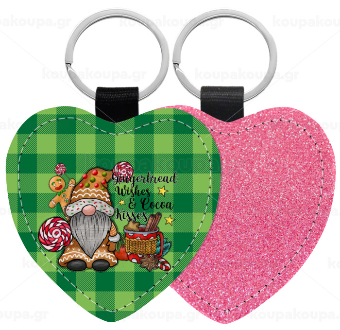 Gingerbread Wishes, Μπρελόκ PU δερμάτινο glitter καρδιά ΡΟΖ