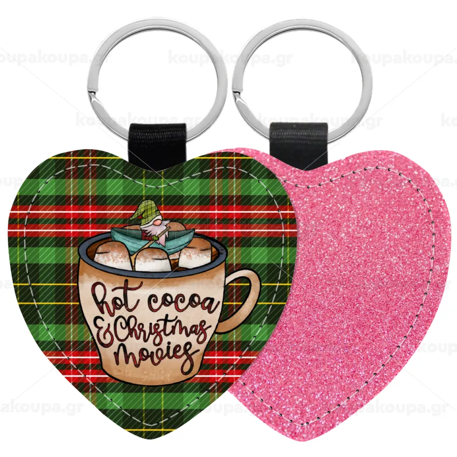 Hot Cocoa And Christmas Movies, Μπρελόκ PU δερμάτινο glitter καρδιά ΡΟΖ