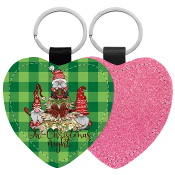 Oh Christmas Night, Μπρελόκ PU δερμάτινο glitter καρδιά ΡΟΖ