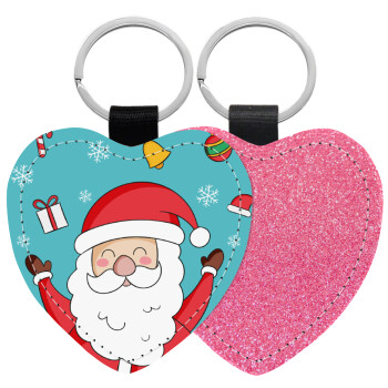 Santa Claus gifts, Μπρελόκ PU δερμάτινο glitter καρδιά ΡΟΖ
