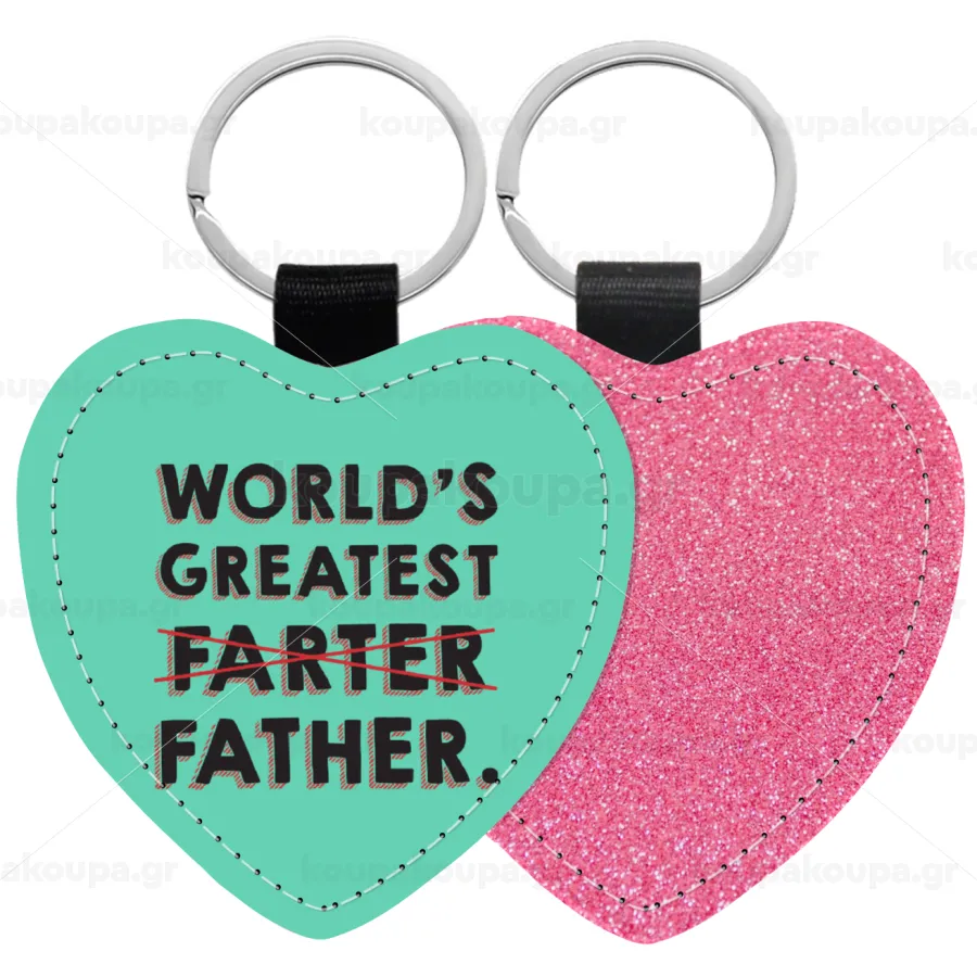 World's greatest farter, Μπρελόκ PU δερμάτινο glitter καρδιά ΡΟΖ