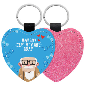 Παππού σε αγαπώ πολύ!, Μπρελόκ PU δερμάτινο glitter καρδιά ΡΟΖ