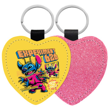 Stitch Experiment 626, Μπρελόκ PU δερμάτινο glitter καρδιά ΡΟΖ