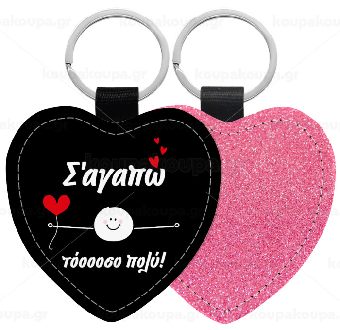 Σ΄αγαπώ τόοοοσο πολύ (Αγόρι)!!!, Μπρελόκ PU δερμάτινο glitter καρδιά ΡΟΖ