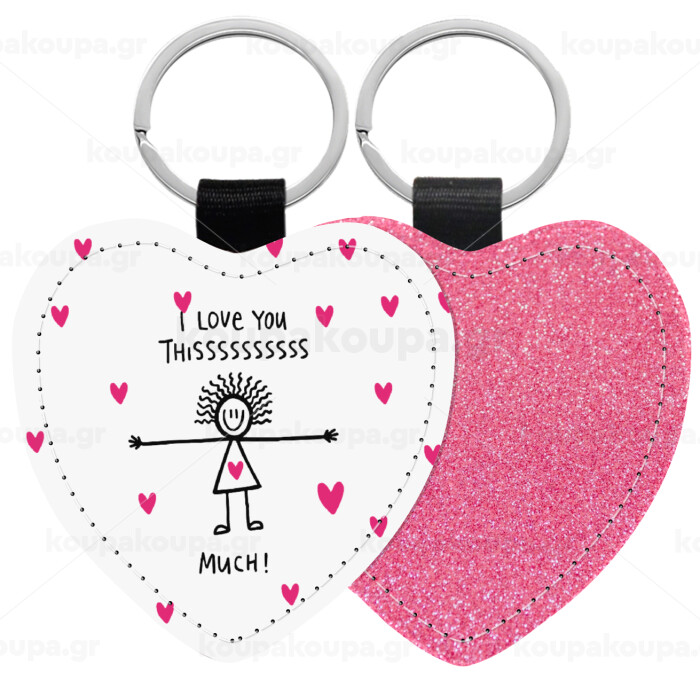 I Love you thissss much..., Μπρελόκ PU δερμάτινο glitter καρδιά ΡΟΖ