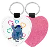 Lilo & Stitch painting, Μπρελόκ PU δερμάτινο glitter καρδιά ΡΟΖ