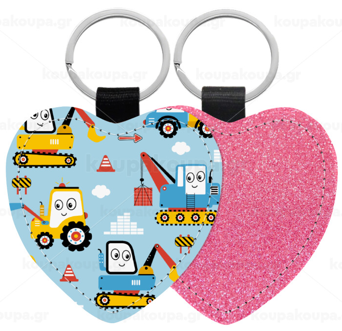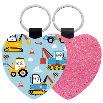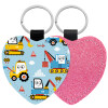 Hand drawing building truck, Μπρελόκ PU δερμάτινο glitter καρδιά ΡΟΖ