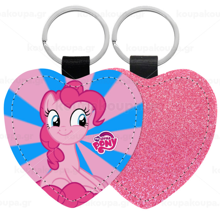 Μικρό μου Πόνυ, Μπρελόκ PU δερμάτινο glitter καρδιά ΡΟΖ