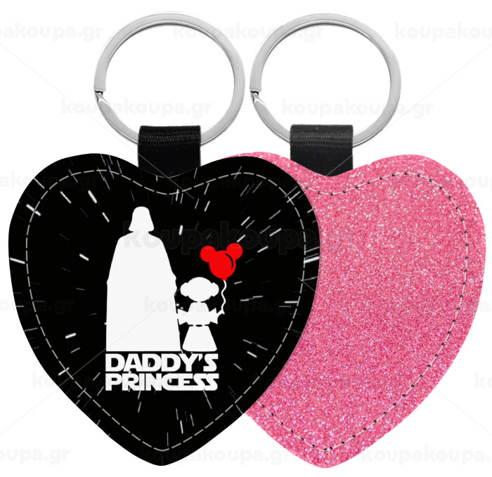 Daddy's princess, Μπρελόκ PU δερμάτινο glitter καρδιά ΡΟΖ