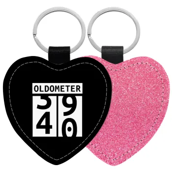 OLDOMETER, Μπρελόκ PU δερμάτινο glitter καρδιά ΡΟΖ