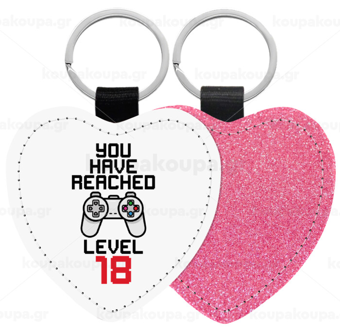 You have Reached level AGE, Μπρελόκ PU δερμάτινο glitter καρδιά ΡΟΖ