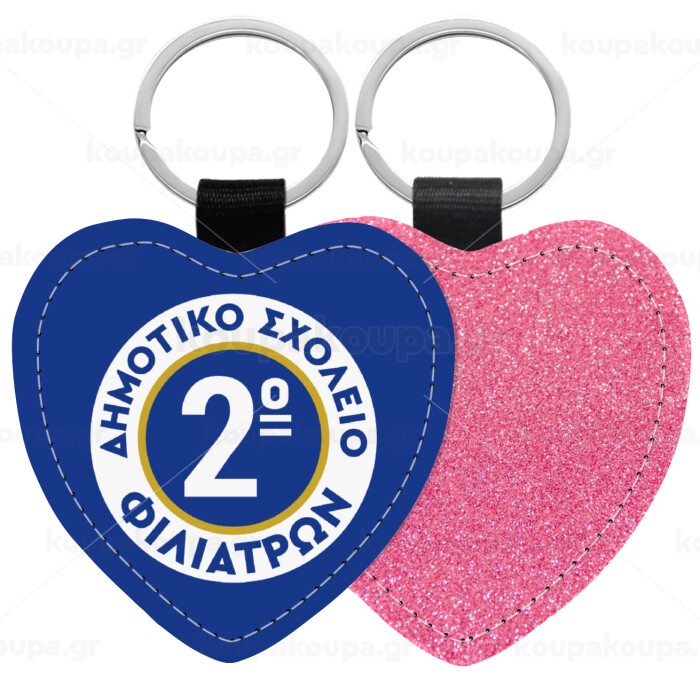 Έμβλημα Σχολικό μπλε κλασική, Μπρελόκ PU δερμάτινο glitter καρδιά ΡΟΖ